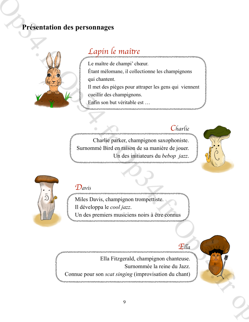 Les enfants seront accompagnés par une histoire fantastique dont ils seront le personnage principal, ils vivront une multitude d’aventures qu’ils parcourront en présence des champignons magiques.