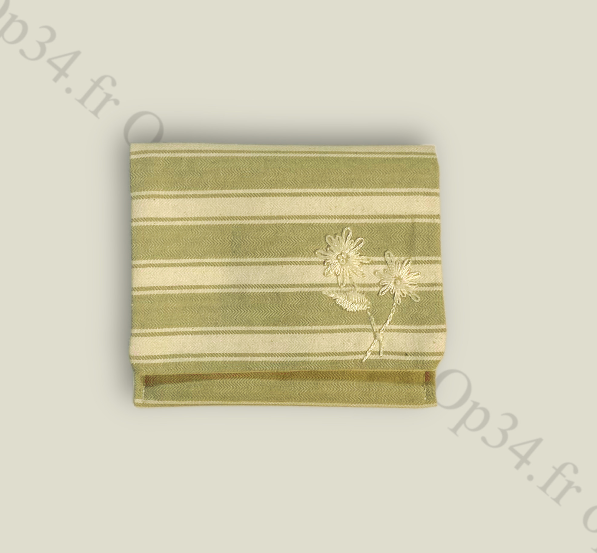 Pratique, la pochette à colophane vous permettra enfin de mettre à l’abri cet objet si fragile tout en conservant un aspect classe et moderne. Elle est composée d’un tissu 100% coton et est ornée d’un très sobre bouquet de fleurs brodé à la main. Un petit bouton aimanté vous permettra de refermer facilement la pochette.