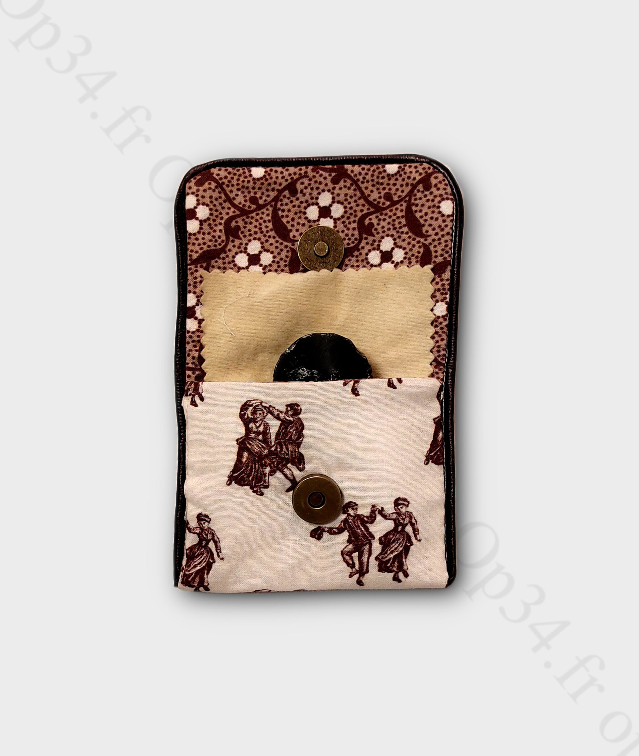 Un bouton assure une fermeture aisée, garantissant une sécurité accrue. Chaque détail de cette pochette a été pensé pour allier esthétique raffinée et fonctionnalité pratique. Le second tissu, présentant également un motif aux fleurs de cerisier, renforce l’harmonie de la gamme « Danse Printanière ».