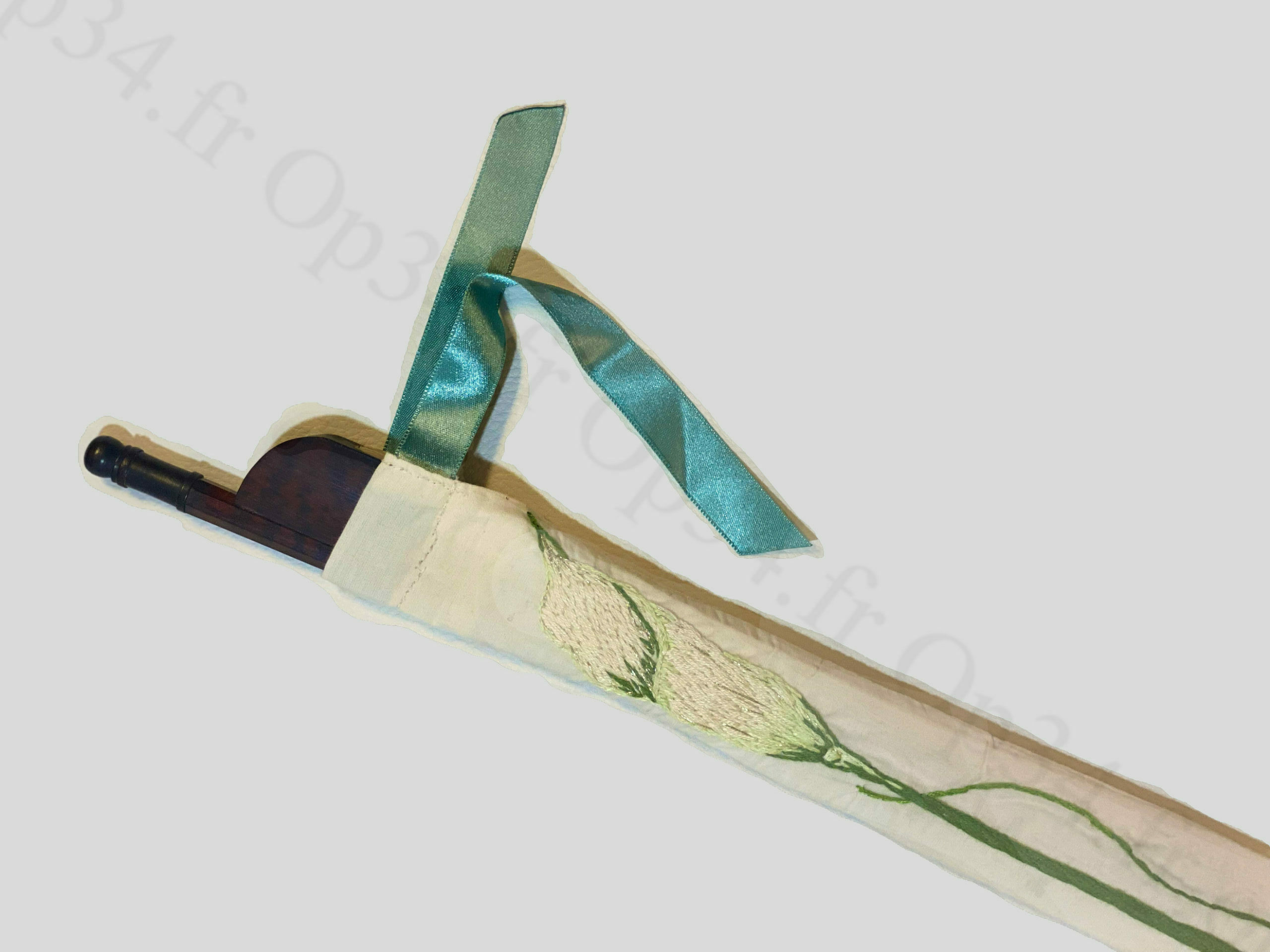 Pratique, cette pochette à colophane vous permettra enfin de mettre à l’abri cet objet si fragile tout en gardant un aspect pur et paisible. Composée d’un tissu 100% coton et ornée d’un très sobre médaillon brodé d’un bouquet de fleurs.