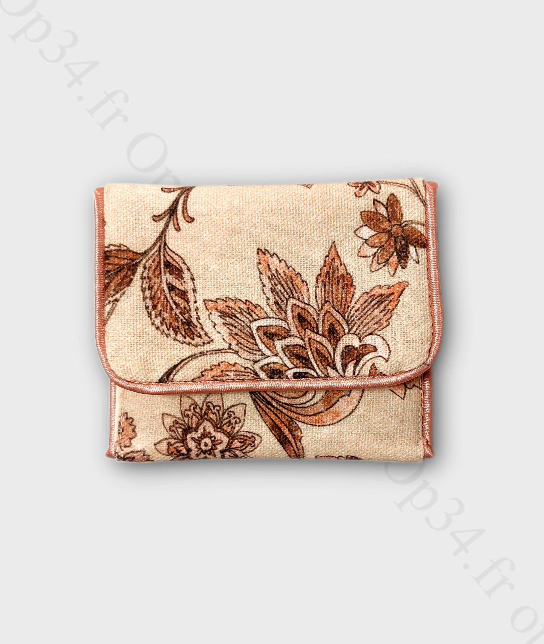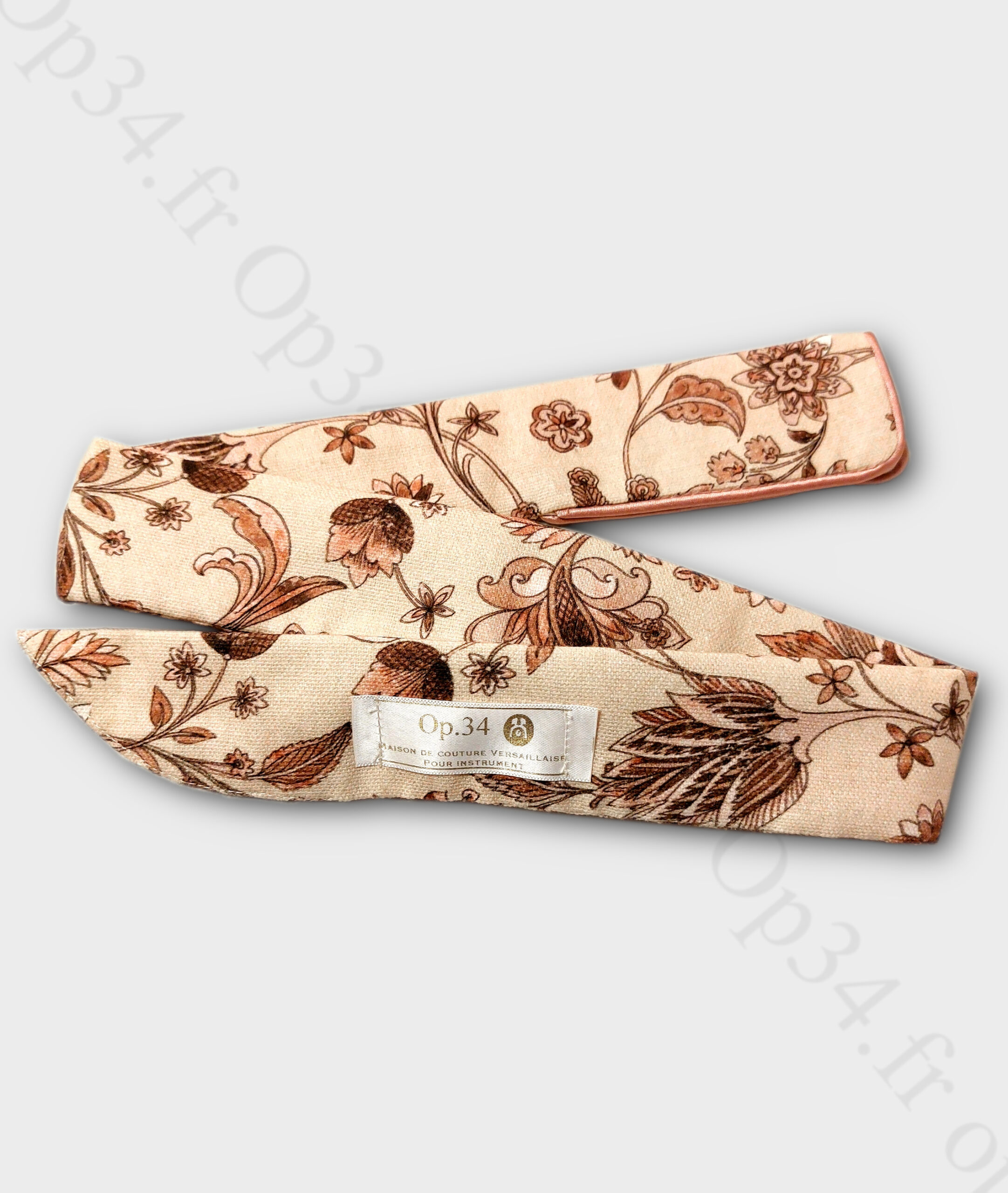 Le tissu extérieur présente un motif floral élégant, doux au toucher et visuellement apaisant. Il est rehaussé par un passe-poil couleur vieux rose, qui ajoute une touche de sophistication et contraste subtilement avec les teintes naturelles du tissu.